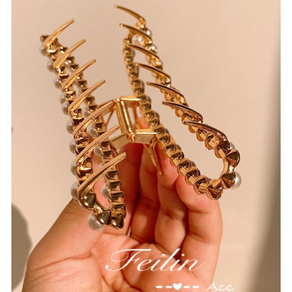 🎀台灣🎀 超仙氣 人魚夾  鯊魚夾 抓夾 交叉鯊魚夾 珍珠抓夾  麻花夾 髮夾 髮箍-圖片-5