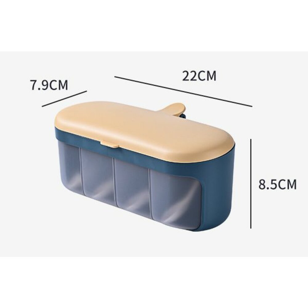非海外商品 不會到時候多了一筆進口關稅~也不會商品有問題 求助無門 本賣場都含稅開立電子發票^^ (系統代開發票 下單結帳前要填寫) 商品材質:PS+PP 商品尺寸:22*7.9*8.5CM 👍一盒四格 👍一味一格 👍分開使用 👍翻蓋設計 👍防水防潮 👍提把設計 👍好拿好握
