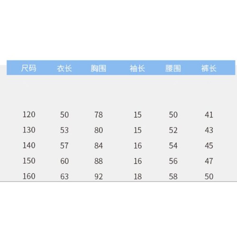 | 顏色 | 120 | 130 | 140 | 150 | 160 |