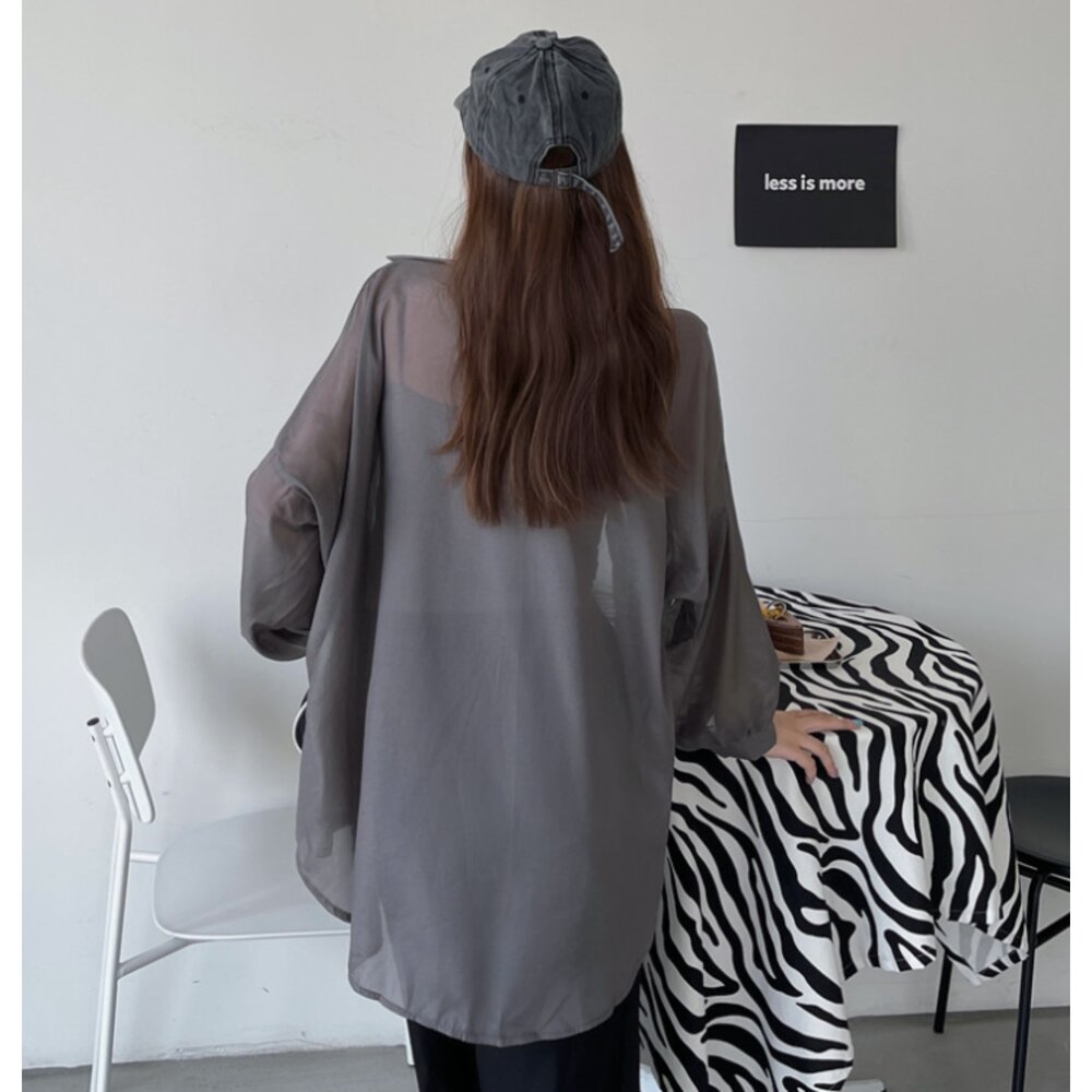 台灣 防曬透膚感襯衫 冰絲感  長袖 罩衫 長袖防曬外套 女裝 防曬襯衫外套 韓版襯衫外套-圖片-7