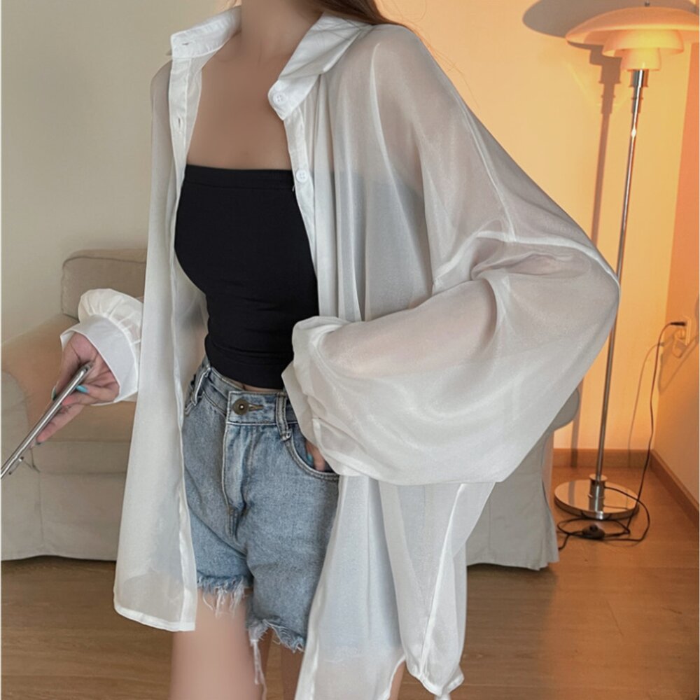 台灣防曬透膚感襯衫冰絲感長袖罩衫長袖防曬外套女裝防曬襯衫外套韓版襯衫外套