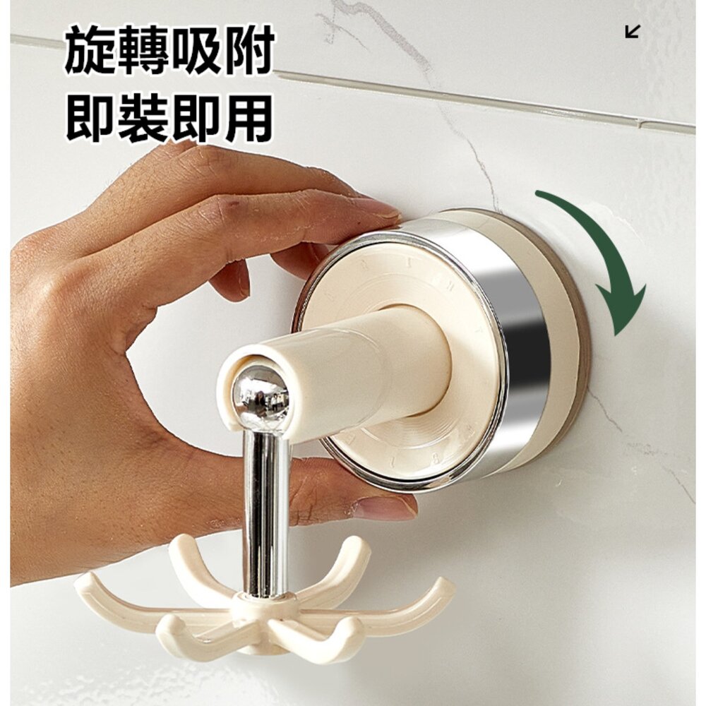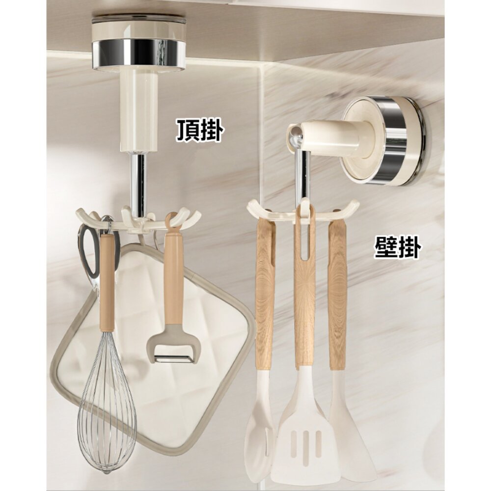 廚房旋轉掛鉤 吸盤掛勾 免打孔掛勾 六爪掛勾  鍋具湯匙收納架 鍋鏟掛架 浴室掛勾-圖片-4