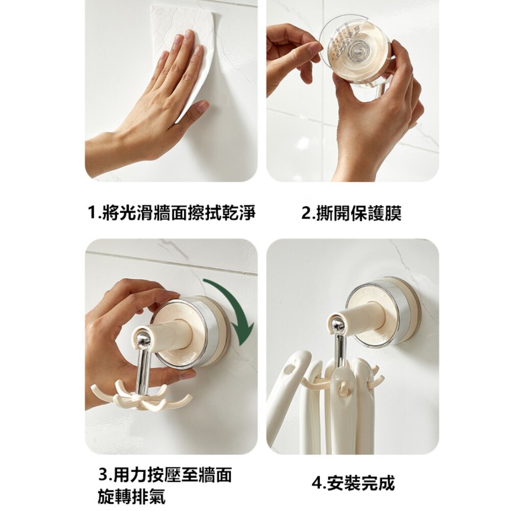 廚房旋轉掛鉤 吸盤掛勾 免打孔掛勾 六爪掛勾  鍋具湯匙收納架 鍋鏟掛架 浴室掛勾-圖片-8