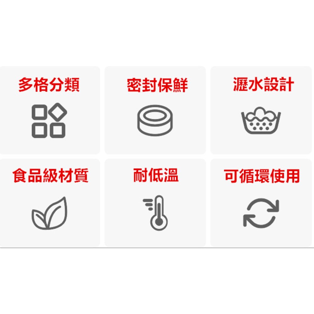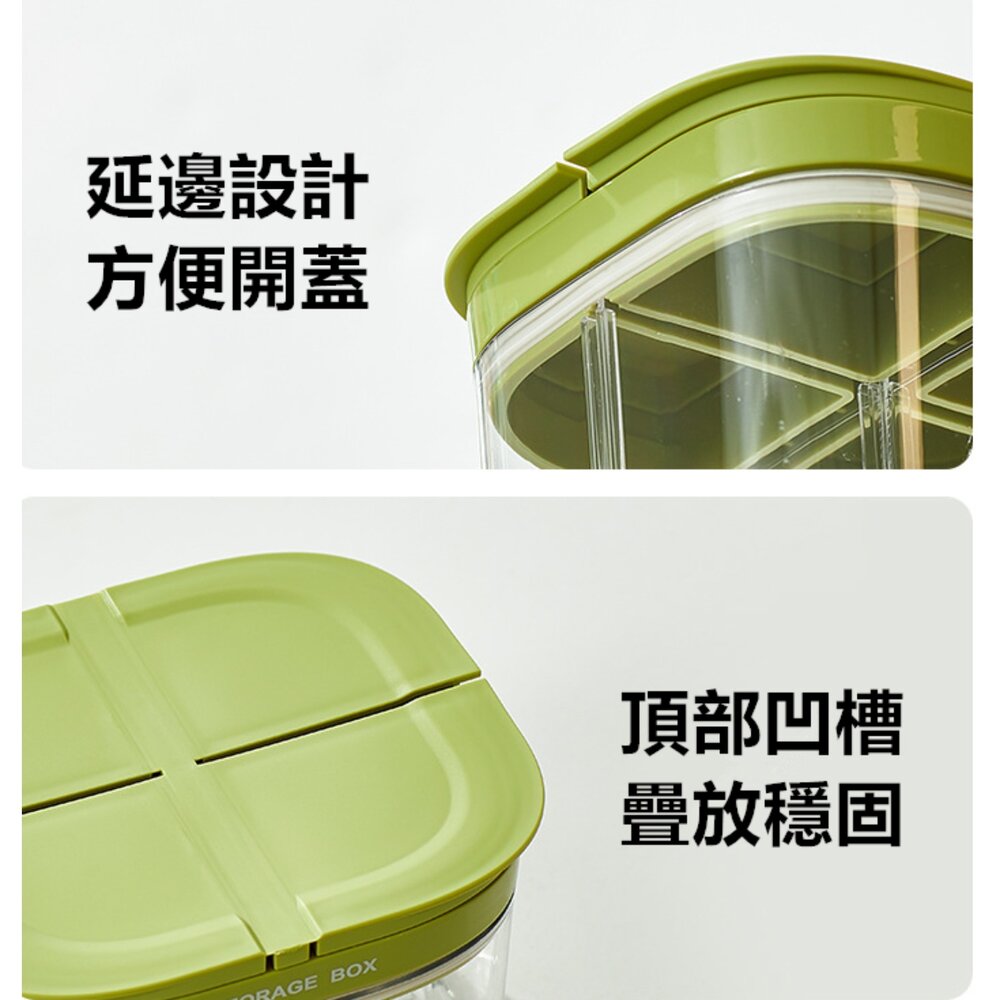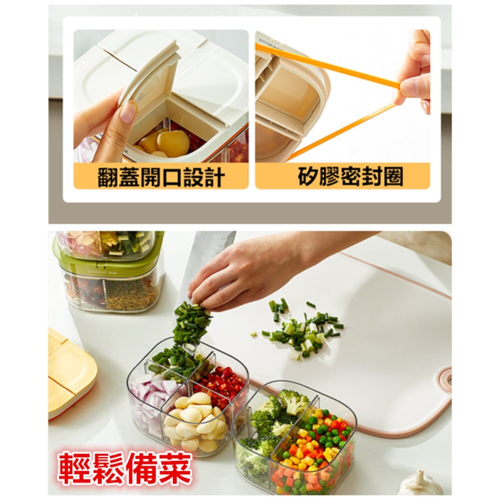 非海外商品 不會到時候多了一筆進口關稅~也不會商品有問題 求助無門 本賣場都含稅開立電子發票^^ (系統代開發票 下單結帳前要填寫) 材質:PET、PP、矽膠 尺寸:13.5*11.3*8.7 CM 強效密封 長效保鮮 加厚矽膠 防止串味 四格分蓋 隨用隨開 一盒多用 滿足需求