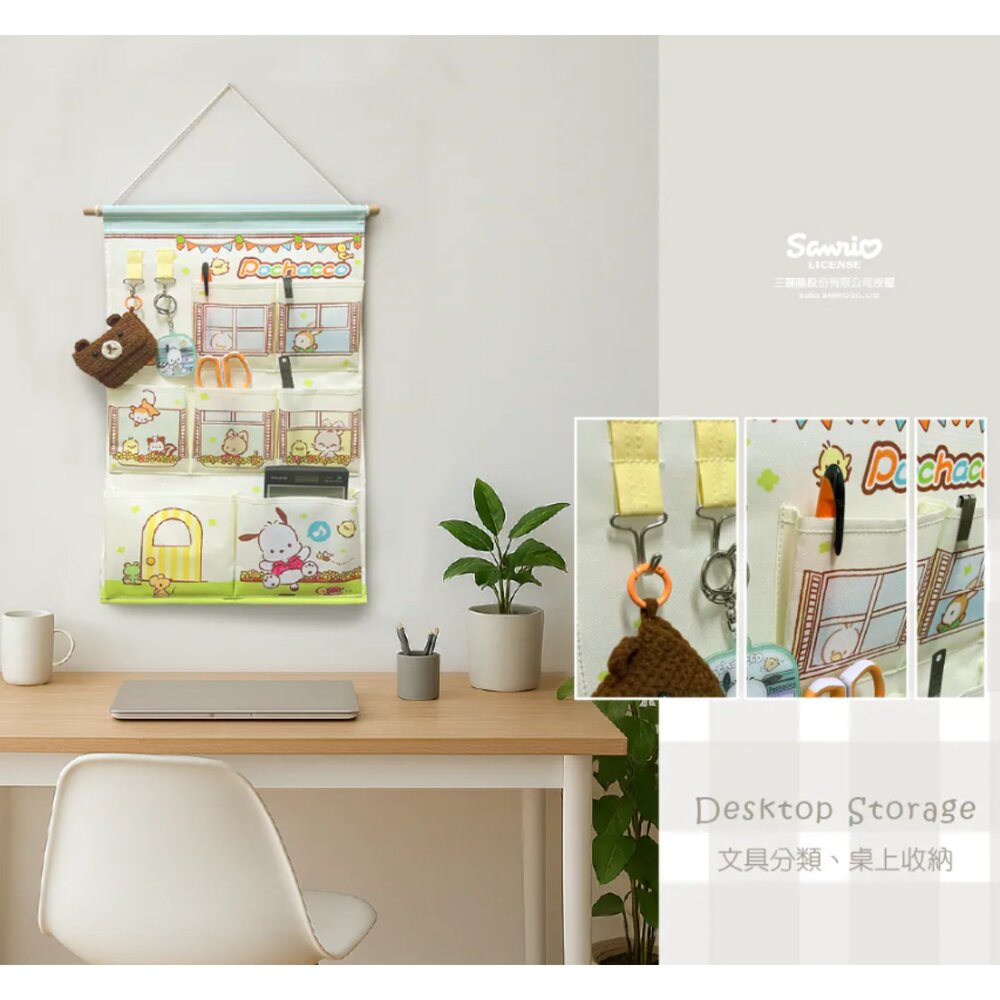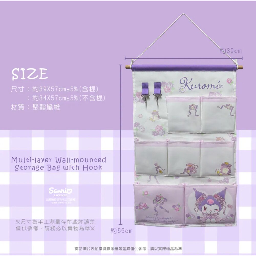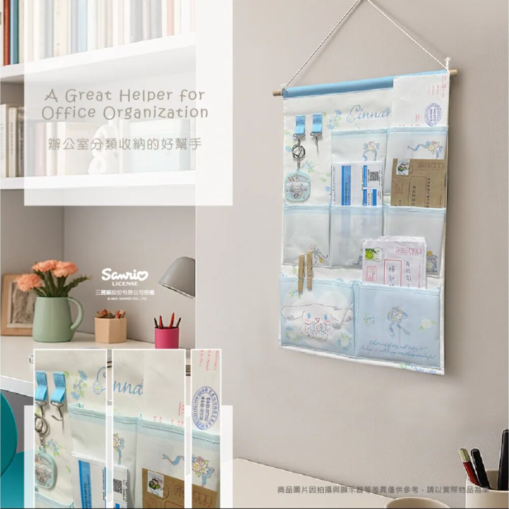 <商品規格> 特色:有效收納整理,辦公、理財、讀書的好夥伴!掛勾更方便分類吊掛~ 保持桌面整潔,有效利用牆面,釋放更多可用空間!多場景適用! 外觀尺寸:約34x57cm±5%(不含棍) 約39x57cm±5%(含棍) 材質:聚酯纖維 📢正版授權 雷射商標