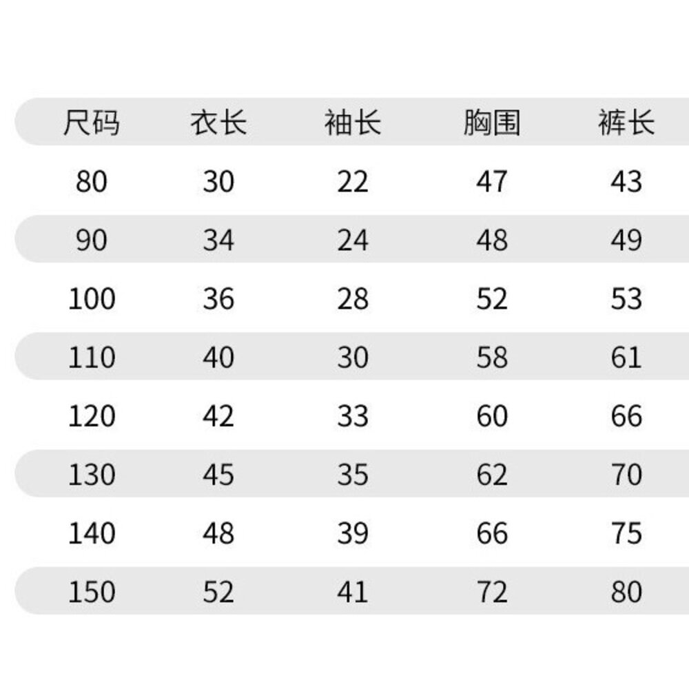 尺寸 100 110 120 130 140 150