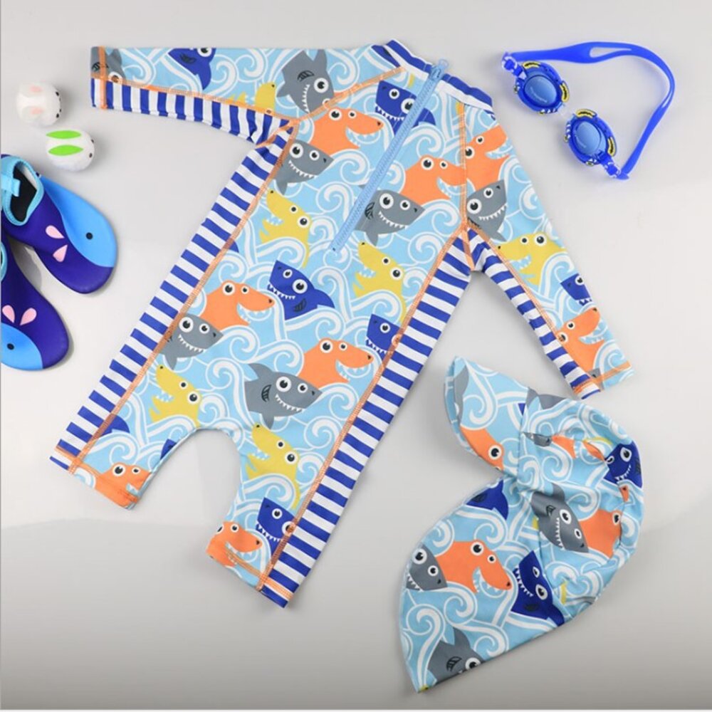 附泳帽 肉肉的拿大1個尺碼 兒童泳衣寶寶泳衣連體防曬速乾男孩小中男童(漫)