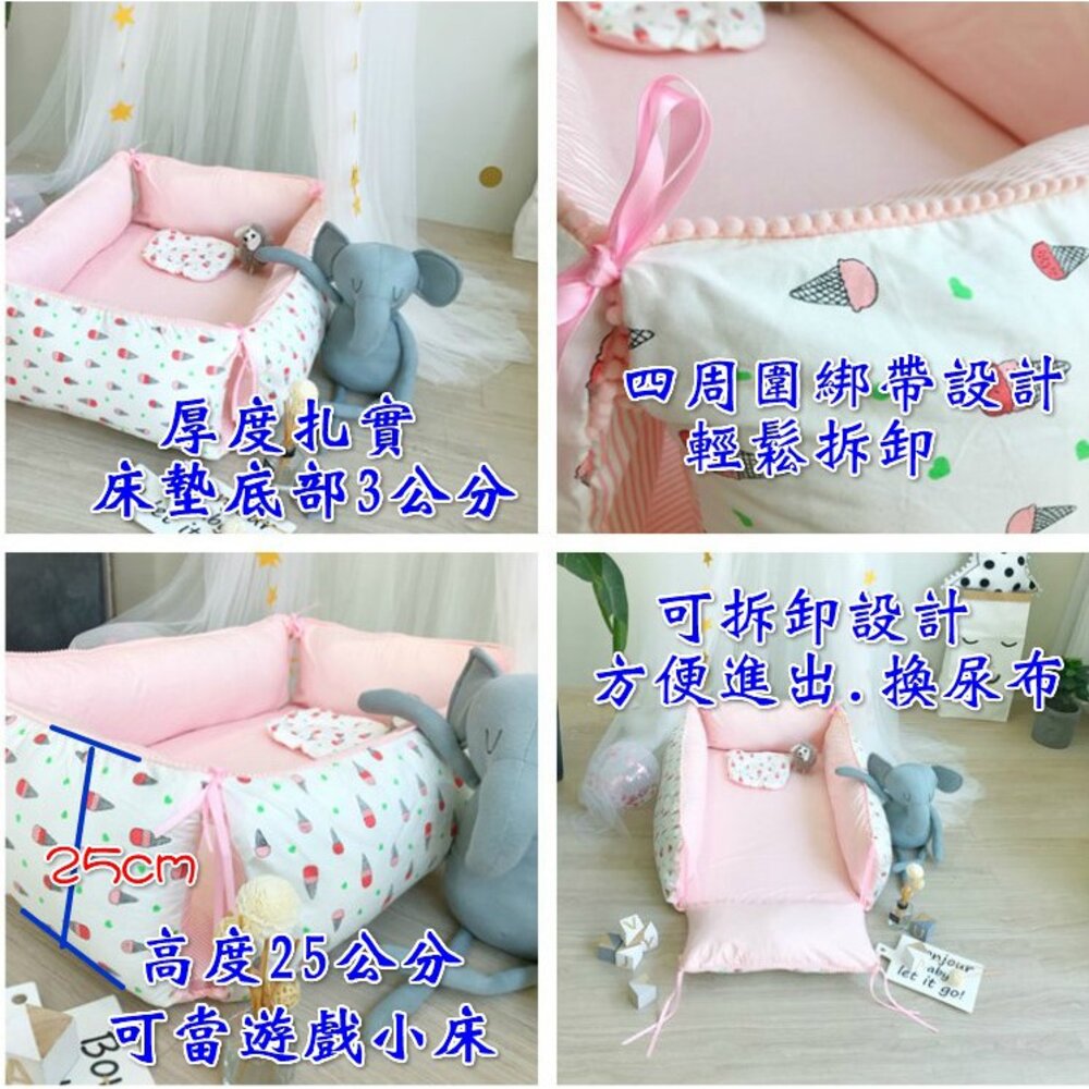 兩件套-小床+枕頭 款式粉象.藍象.冰淇淋.恐龍樂園.仙人掌