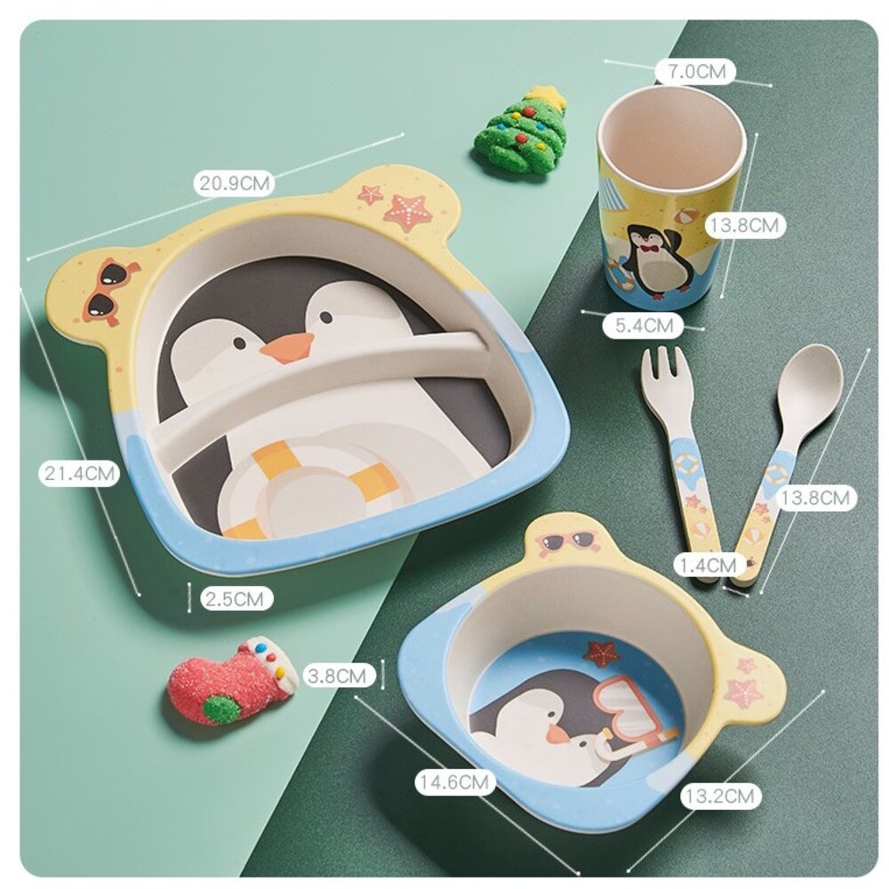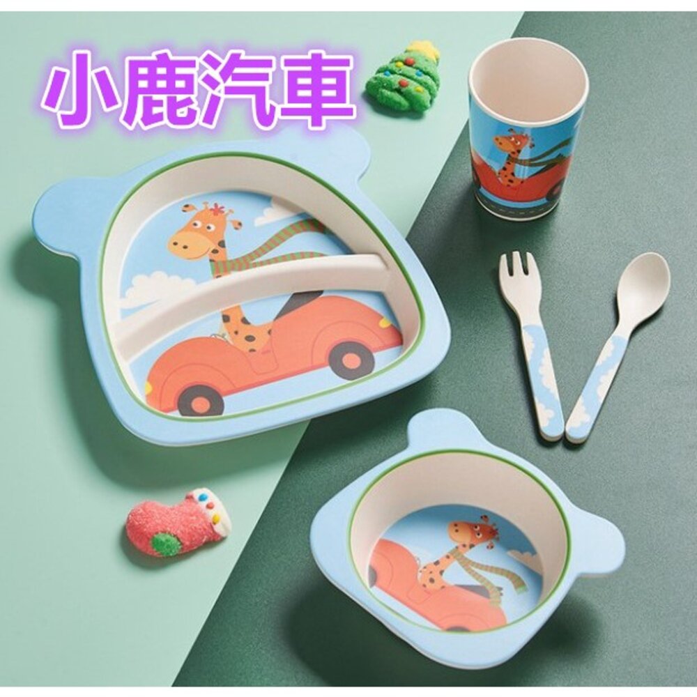 竹纖維兒童餐具套裝 5件組餐具 學習餐具 無毒餐具 寶寶餐具 兒童餐具