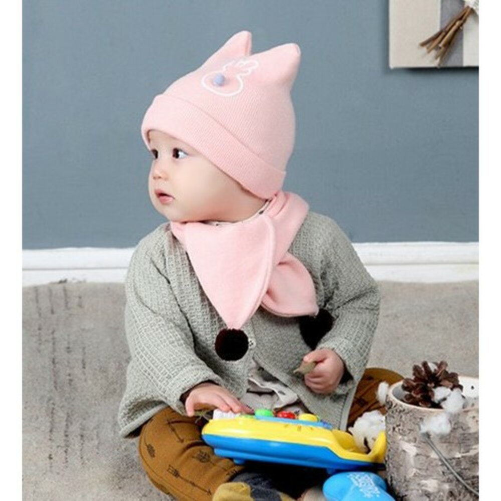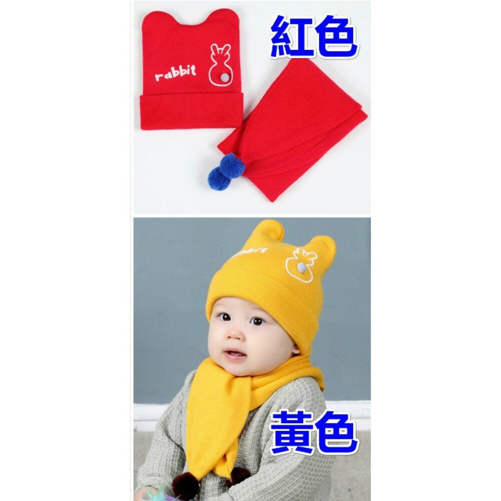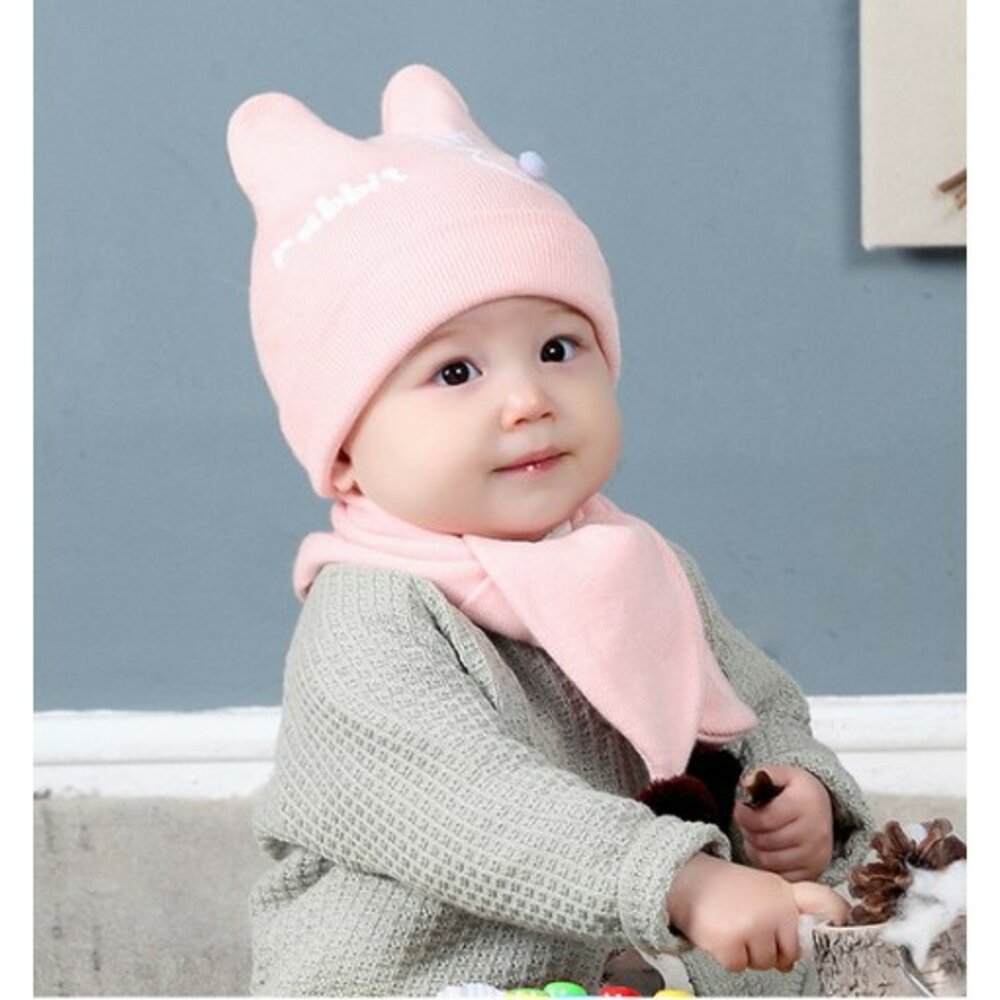 寶寶套帽 嬰幼兒純色兔子兩件套 帽子+圍巾