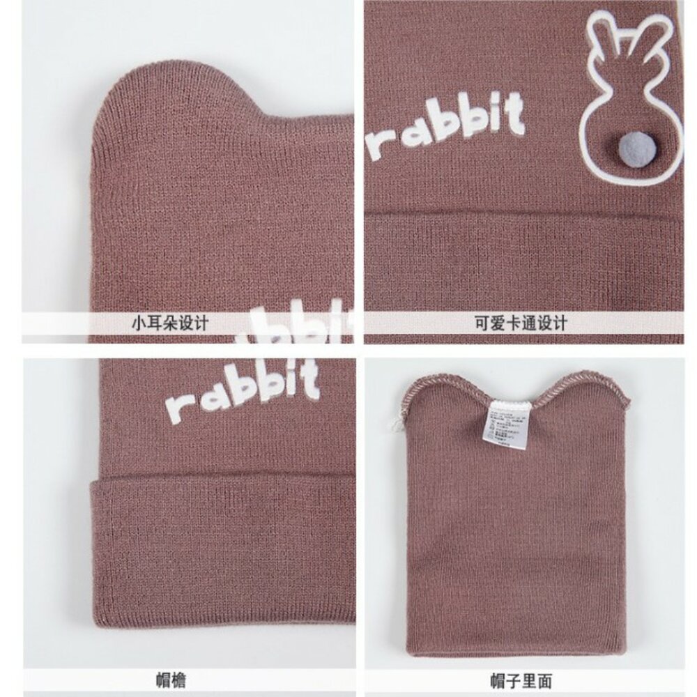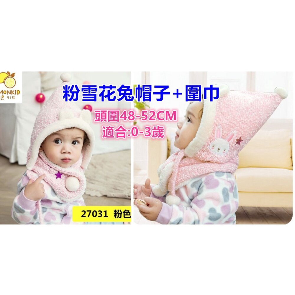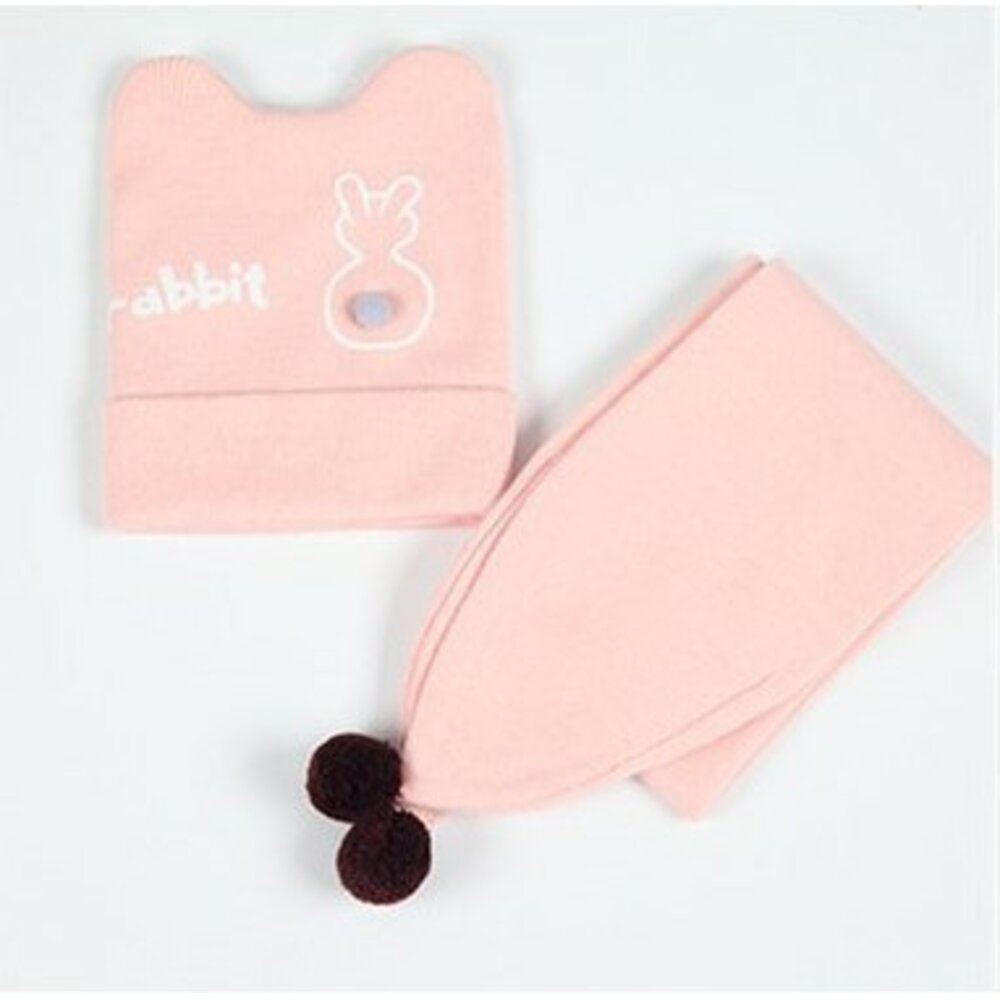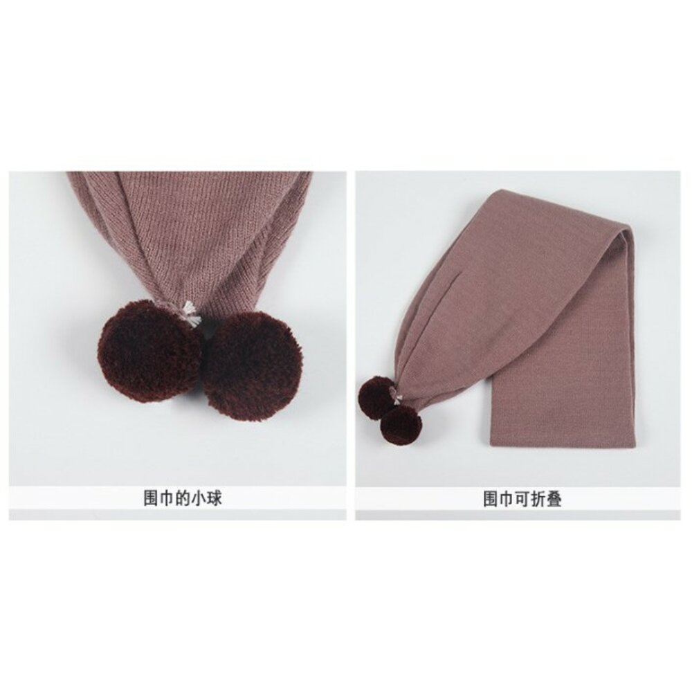 寶寶套帽 嬰幼兒純色兔子兩件套 帽子+圍巾