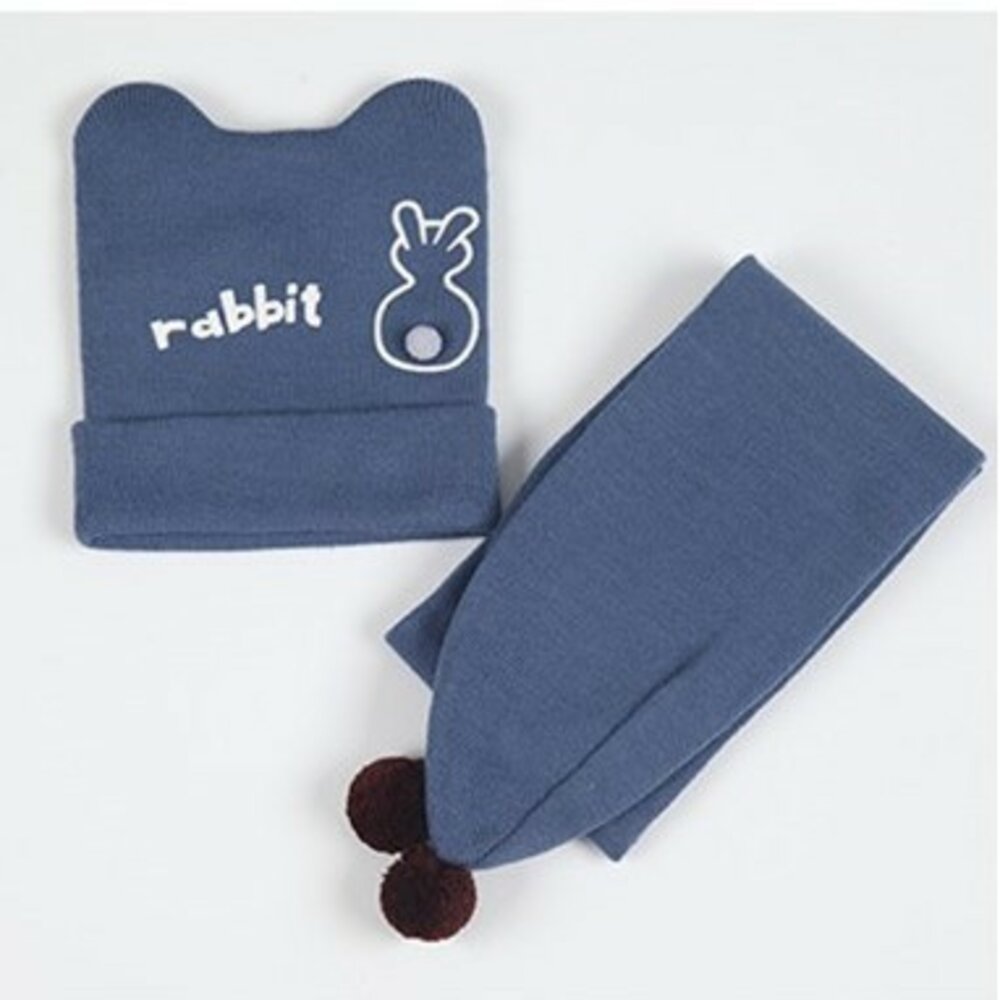寶寶套帽 嬰幼兒純色兔子兩件套 帽子+圍巾-圖片-1
