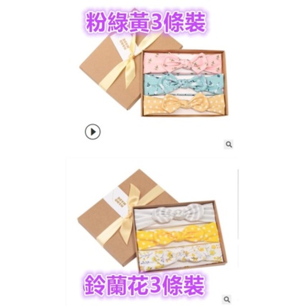 ()新款女寶純棉蝴蝶結髮帶 三條裝頭帶